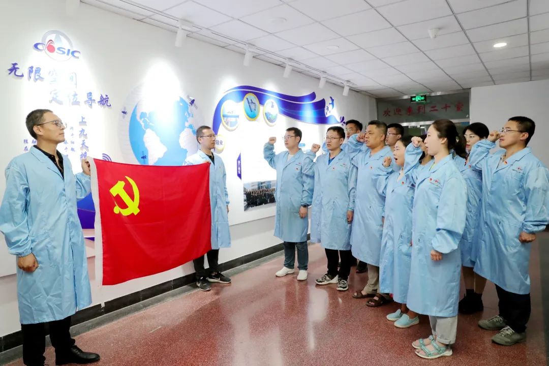 航天科工三院33所高精度加速度计组合研制团队重温入党誓词。在“嫦娥五号”交会对接等重大航天任务中,他们发挥了关键作用,做出了重要贡献。