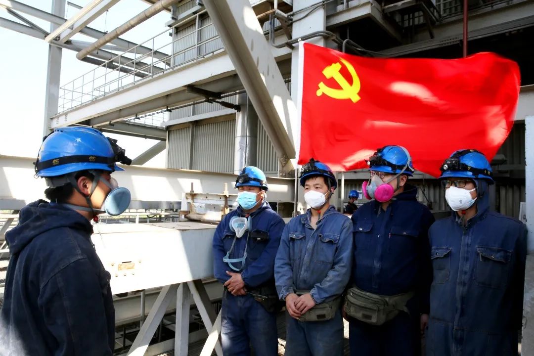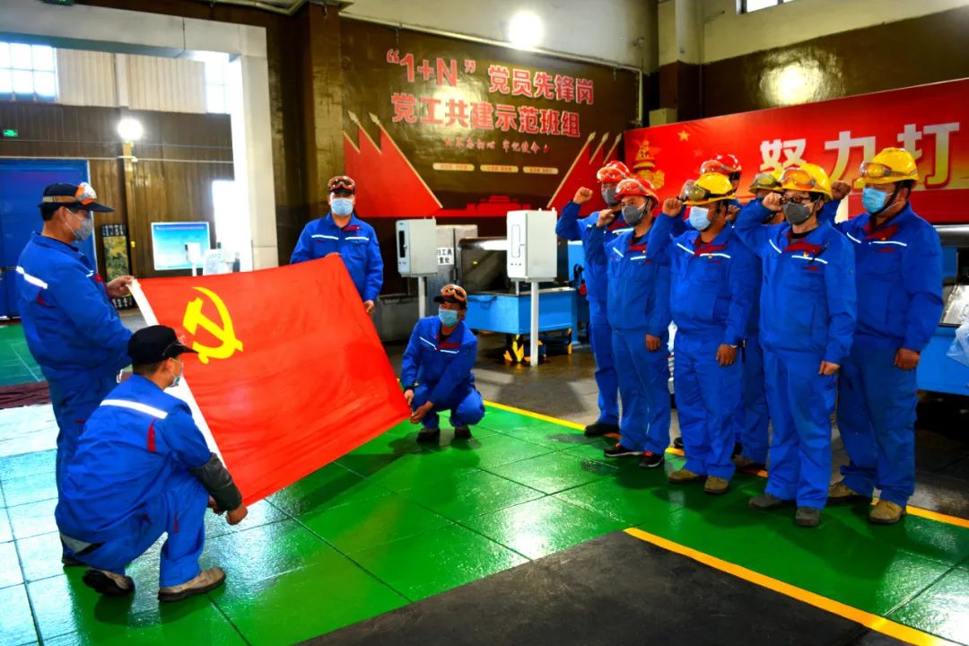 在中盐内蒙古化工,首批“中央企业基层示范党支部”——制钠二车间党支部“1+N”党员干部重温入党誓词。