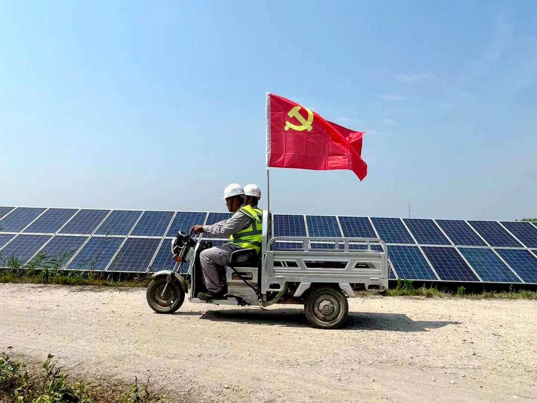 国家电投所属东方能源,参建全国最大屋顶光伏发电项目——山东昊华6万千瓦屋顶光伏电站。图为东方能源党员干部赴狼牙山开展革命教育,重温入党誓词。