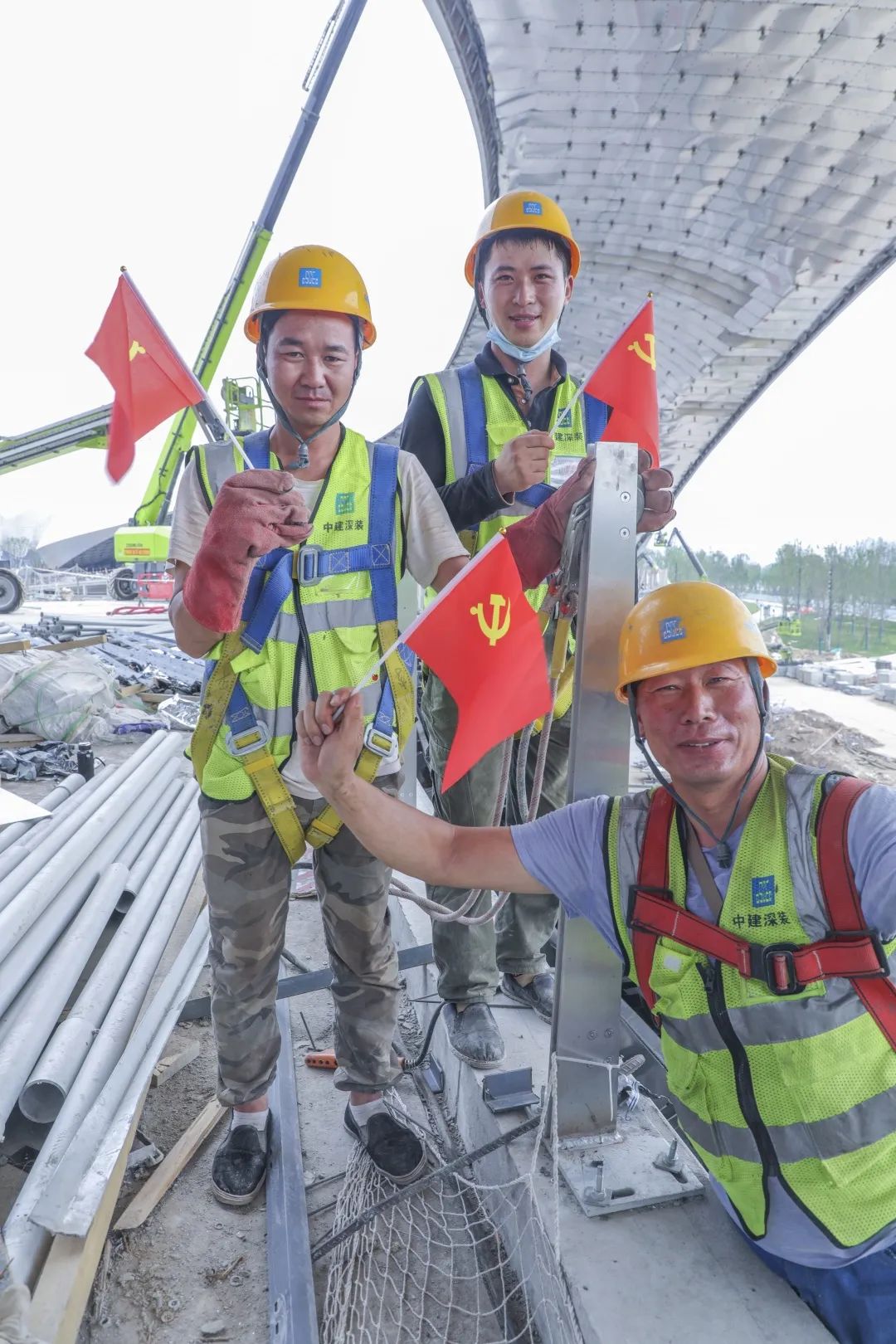 中建集团所属中建装饰长安云项目(一带一路文化交流中心项目)工地, 幕墙工人坚守平凡的岗位,祝福党百年华诞。