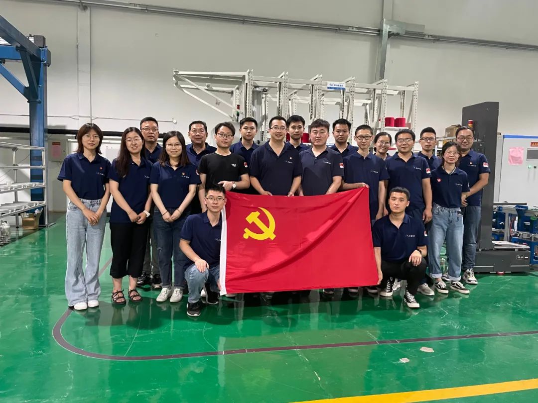 机械总院集团轻量化院数字化制造技术研究所团队在怀柔实验基地多源多参数集中控制平台前与党旗合照。