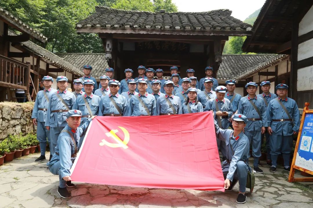 中广核组织策划的“新起点、新征程、再出发”重走长征路实践教育活动贵州遵义站,学员们和党旗同框。