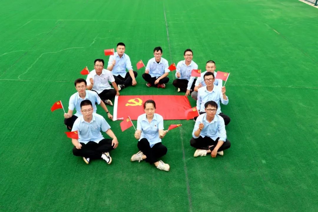 南方电网广东江门台山供电局职工在绿茵操场,向党表白。