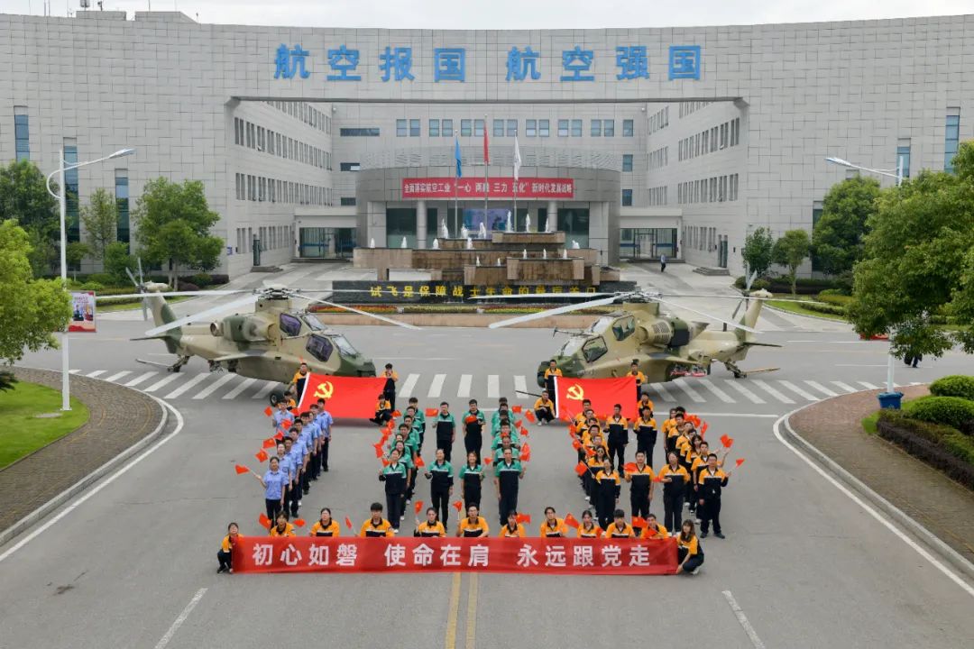 航空工业昌飞广大党员干部与直10合影,在党的百年华诞之际表达“初心如磐,使命在肩,永远跟党走”的坚定决心。