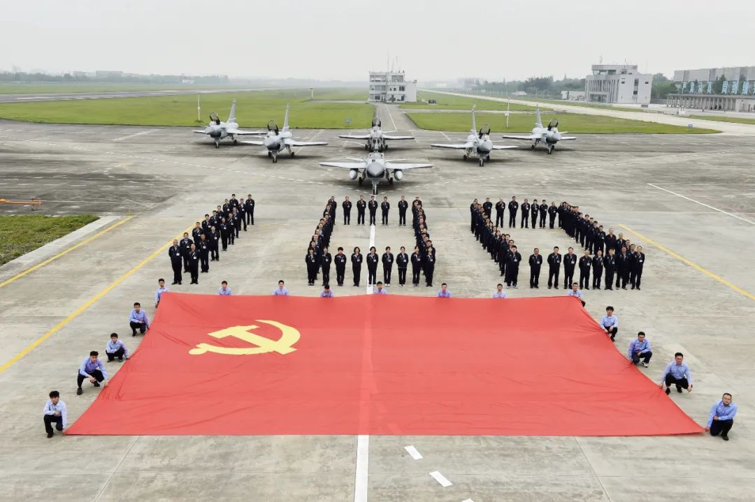 在歼10战机前,航空工业成飞党员干部站坚定理想信念,逐梦新征程,永远跟党走!