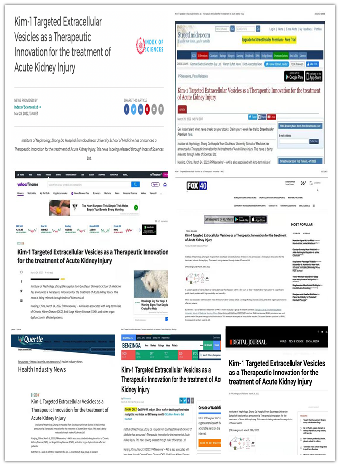 该文章发表后,当期即被Nature Reviews Nephrology作为研究精华(Research Highlights)进行推荐。并且受到媒体高度关注,Google News和Yahoo、FOX 40、FOX28、Digital Journal、Benzinga、Quertle、Streetinsider等国外多家媒体对此纷纷进行报道,一致认为这是肾脏病治疗领域具有巨大转化前景的创新疗法。(刘敏 程守勤)