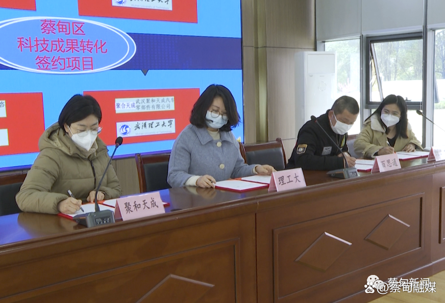 2月17日,蔡甸区科技成果转化系列活动在区新时代文明实践中心举行。武汉聚和天成汽车零部件有限公司等4家企业与武汉理工大学等院校现场签订科技成果转化合作协议,校企合作,共同推进科技成果在蔡甸落地转化。