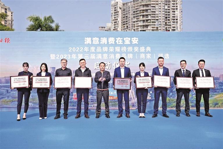 抢开局,促消费,争满意,暖民心!2月25日上午,“满意消费在宝安”——2022年度总评榜颁奖典礼暨2023年满意消费品牌(商家)评选启动仪式在宝安体育馆南门广场深圳车博会现场成功举办。深圳市宝安区投资推广署、深圳市宝安区消委会、深圳市宝安日报社等领导嘉宾,以及深圳市宝安区各优秀品牌(商家)、行业代表,共同见证了宝安区2022年度满意消费品牌(商家)的闪耀诞生。会上,共有32家品牌(商家)获“满意消费”表彰。