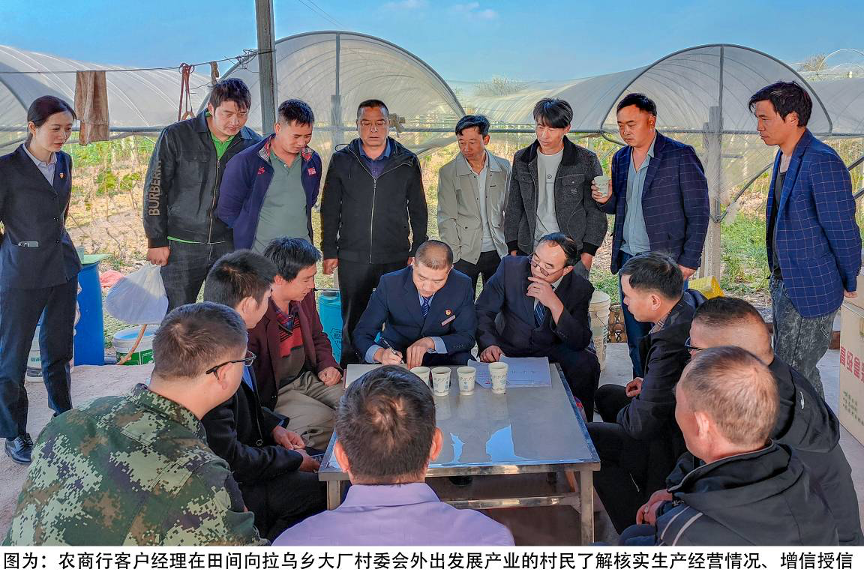 拉乌彝族乡是宾川县最边远的高寒山区少数民族乡,山高林密,耕地稀少,支柱产业核桃价格下滑后,村民经济受到严重影响,许多村民外出到金牛、力角、州城、鸡足山等乡镇,甚至到附近的鹤庆、永胜县承包土地,学习种植葡萄、柑桔谋发展。为了让外出发展的村民“金融服务不断档、发展资金不掉链”,宾川农商银行在拉乌乡党委和村委会的支持协助下,逐村逐户找到村民在异地的生产经营地,在田边、工棚里了解、核实种植经营、发展愿景、资金需求,现场为村民授信、增信,为春耕备耕送上“及时雨”。