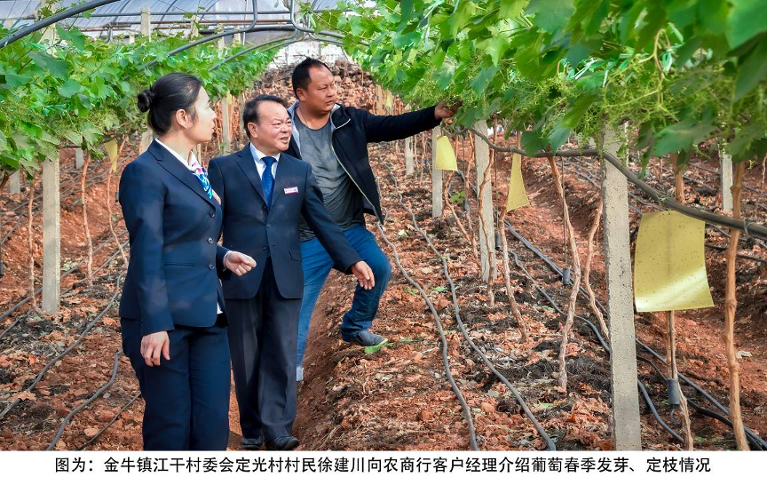 “没想到这么方便,我在微信群里点开这个‘一键申贷’提交了贷款申请就接到农商银行客户经理的电话,第二天贷款合同一签,又在手机银行上一点,20万元贷款就到账了。”望着春意盎然的葡萄园,金牛镇江干村委会定光村村民徐建川激动地说:“生产垫本不用愁了,今年34亩葡萄又将有好收成。”