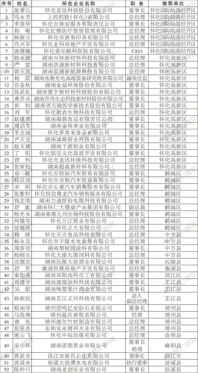 怀化市第二批“企业家绿卡”申请人员名单公示