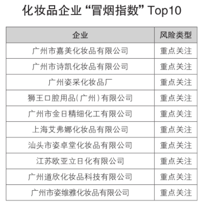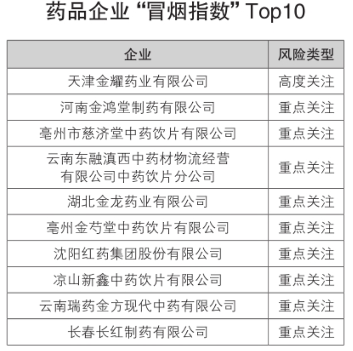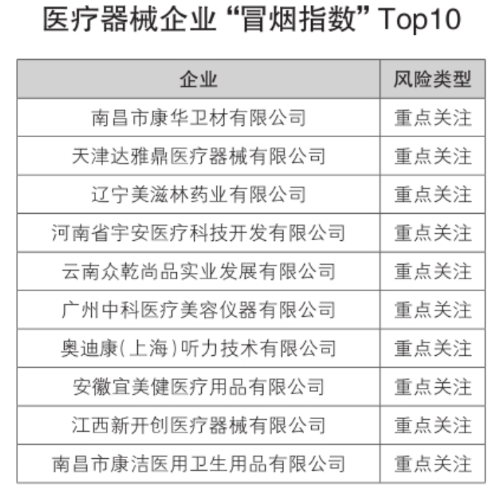 第四期“‘两品一械’企业‘冒烟指数’TOP10”发布