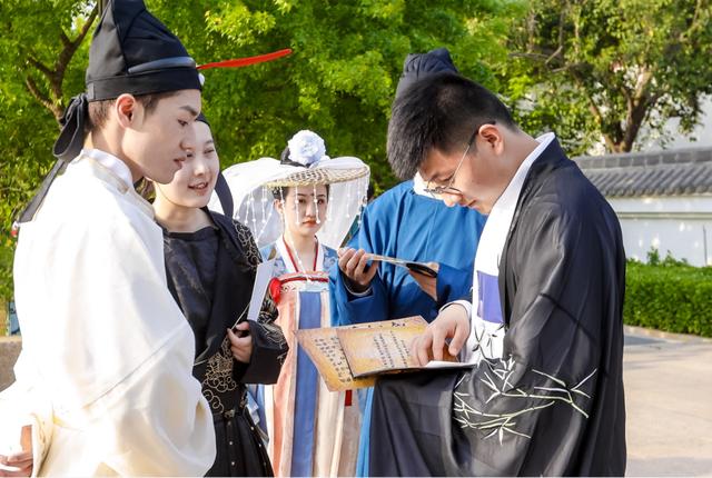 (图:游客在隋唐洛阳城九洲池参与神都诡事录实景剧本杀,与NPC互动)