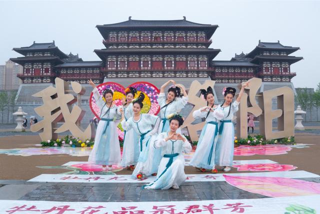 (图:隋唐洛阳城神都仙女团在应天门北广场“我爱洛阳”装置前“打卡”)