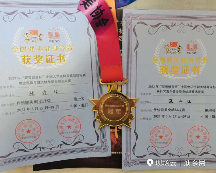 近日,中国大学生健美健身锦标赛暨世界青年健美健身锦标赛选拔赛在厦门完美闭幕,来自新乡医学院三全学院的大学生张方旭从全国420余名运动员中脱颖而出,荣获传统健美80公斤级冠军,同时获得“国家一级运动员”的称号。