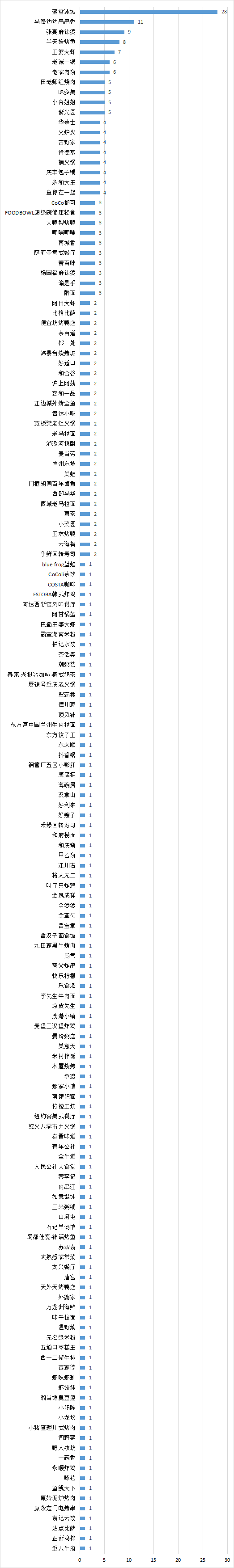 累计方面,2023年1月以来发布的通报统计存在食品安全问题的连锁餐饮门店数量排在第一的依旧是蜜雪冰城,达到28家。