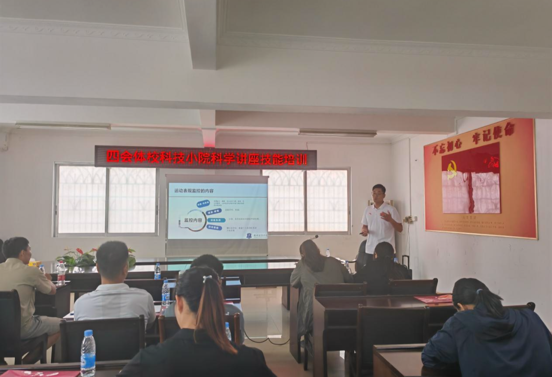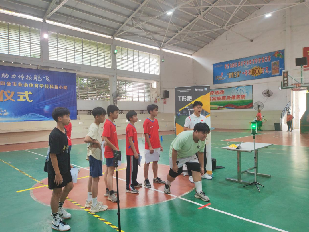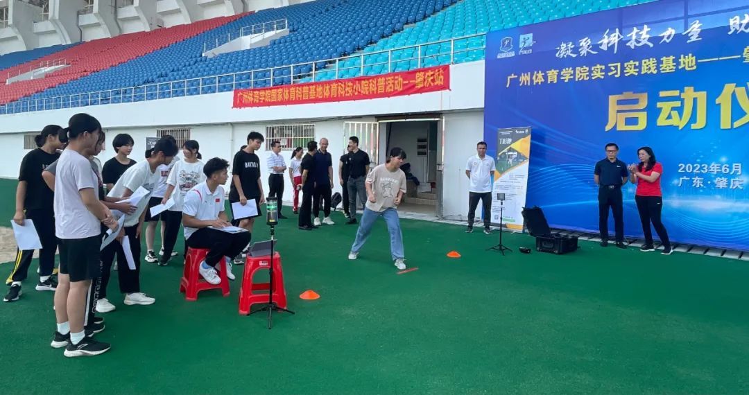 体育科技小院启动仪式结束后,广州体育学院孙健教授团队就科学训练研究进展与发展趋势、青少年运动员长期发展理论与实操技能开展培训,为肇庆、怀集和四会三地青少年业余体校教练员、中小学体育教师及相关工作人员提供科学训练指导。同时,广州体育学院科技小院建设团队师生为三地运动员开展运动能力实时监测与评价。通过便携纵跳测试系统、光电分段计时系统、力量功率测评系统、反应灵敏监测系统、人体成分分析仪等数字化设备,实时监控训练质量、采集关键数据,对青少年运动员的身体形态、力量、速度、灵敏、反应、柔韧等进行科学评测与科普推广,为业余体校建立乡村体育后备力量“雏鹰计划”体育苗子成长档案。