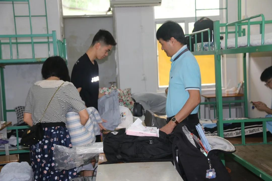 清远校区的学生与家长一同整理宿舍
