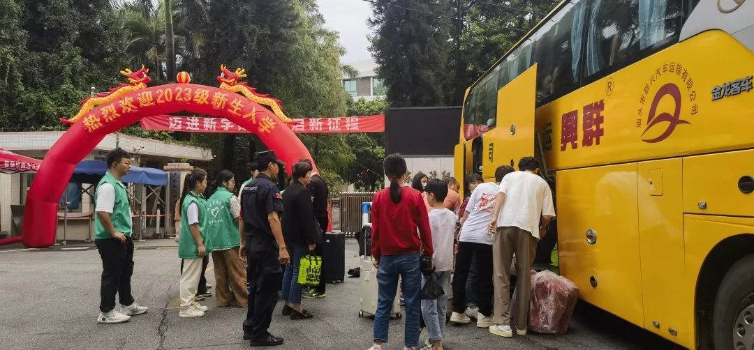 不仅高铁站到学校有接驳大巴,由于校园面积比较大,学校在校内也设了接驳大巴,不间断地将新生护送到校内各二级学院报到点。