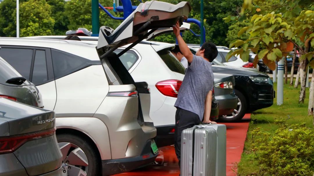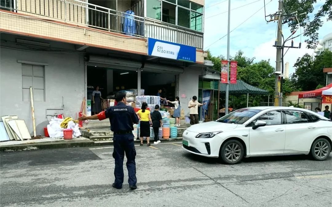 保卫工作人员承担着疏导车辆的艰巨任务,还不时帮助搬运行李。