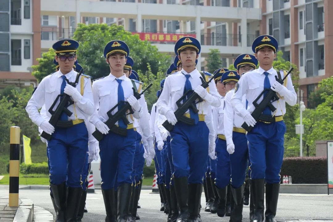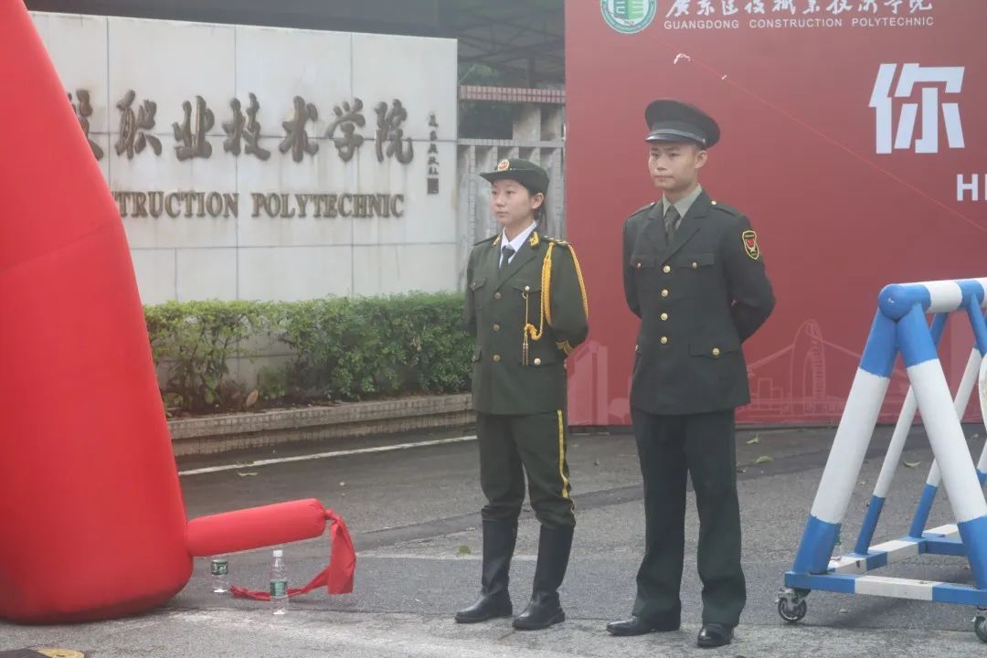 广东建院国旗护卫队为入学新生保驾护航,穿着帅气的制服在校园内巡逻,成为了一道移动的靓丽风景。