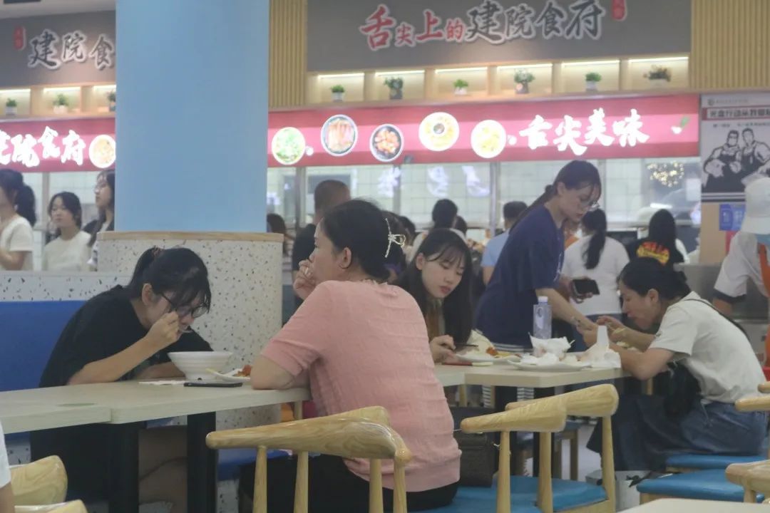对于每一位学生和家长来说,入学第一天的食堂就餐,无疑是最令人期待的,一家人聚在食堂其乐融融地吃饭,感觉美滋滋的。