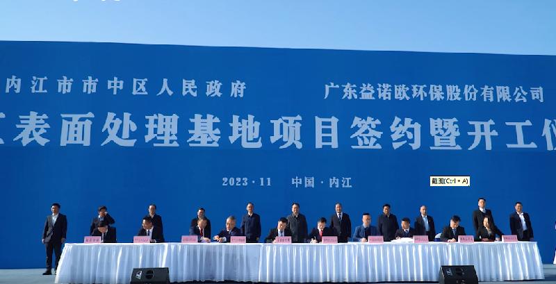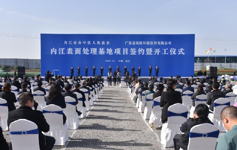 11月16日,内江表面处理基地项目签约暨开工仪式在内江市市中区节能环保产业园成功举行。市委副书记、市长李丹,市人大常委会主任戴震,市政协主席康俊,市委常委、常务副市长何政,市政府副市长、市中区委书记马炬出席开工仪式,市政府副市长毕胜主持仪式,市委常委、统战部部长罗万东出席并致辞。