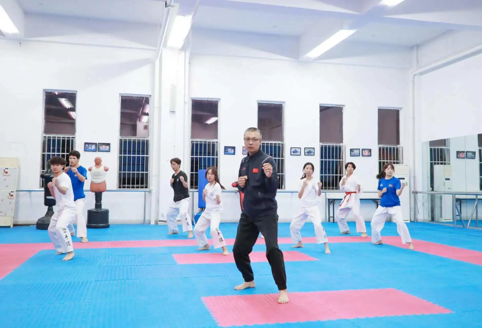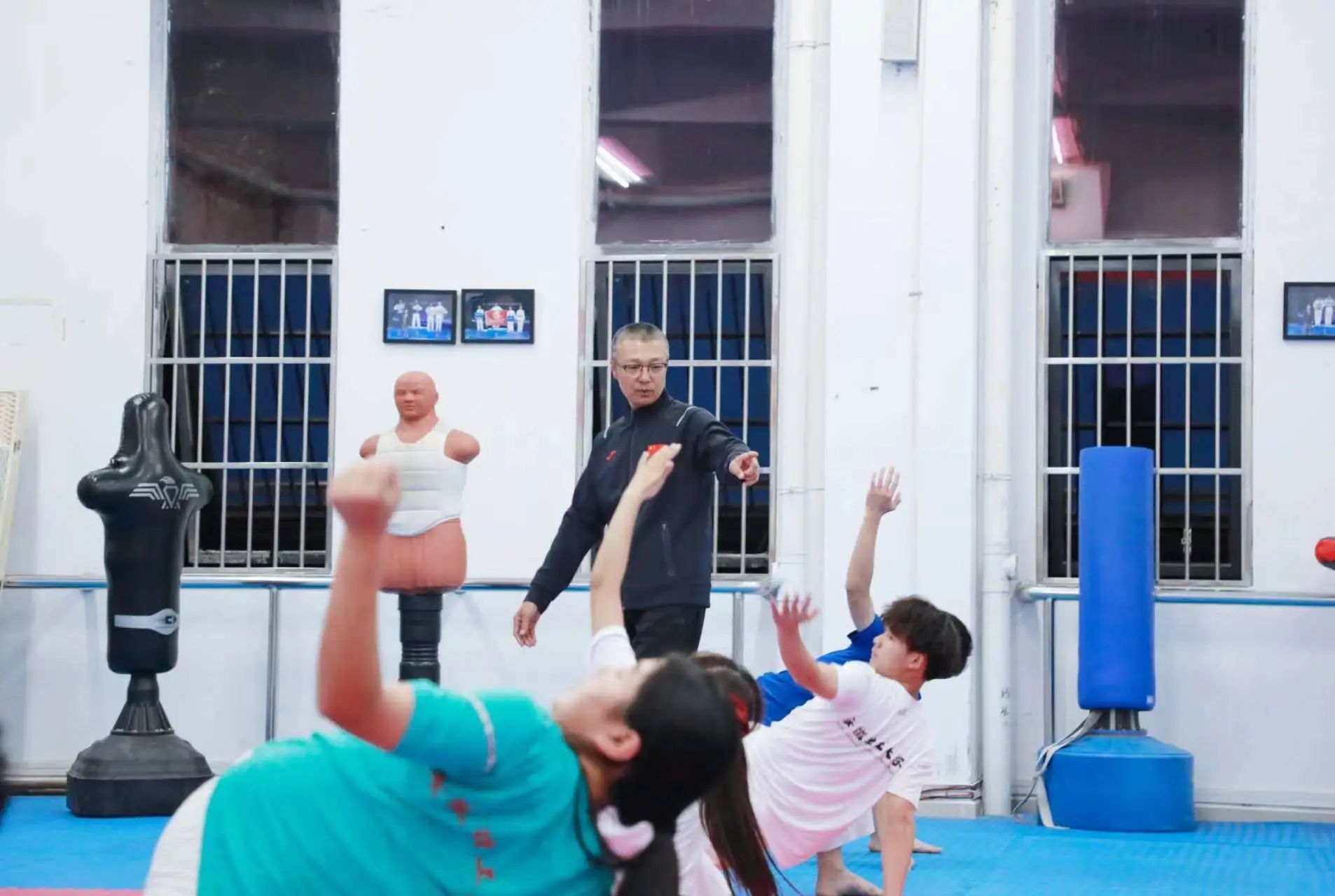 作为教练,董刚总能匠心独运,为不同的队员量身定制科学高效的训练方法。“在训练中,董老师会结合每个队员的性格与所擅长的动作,做出个性化的指导,避免一刀切的打法。让每个队员都能展现出属于自己的技术风格,发挥出最大的优势。”校空手道队队员刘凡说。比赛期间,董刚从头到尾陪伴着学生,为她们做出及时、准确的指导。“董老师坐在场边的教练席,对于队员来说就是一根‘定心针’。”赛场上,董刚不仅能缓解队员的情绪,还能迅速看清场上的局势,做出合适的指令。“比赛时,我们有时候会非常紧张,脑子混沌,但董老师在场边的每一句话我们都能清楚地听到,每次遇到僵局不知道怎么破局时,总能被他一句话点醒,‘踢他头’、‘踢他中段’‘不要进,等他来’,这些指令简短却是直接见效的实战术。”刘凡说。