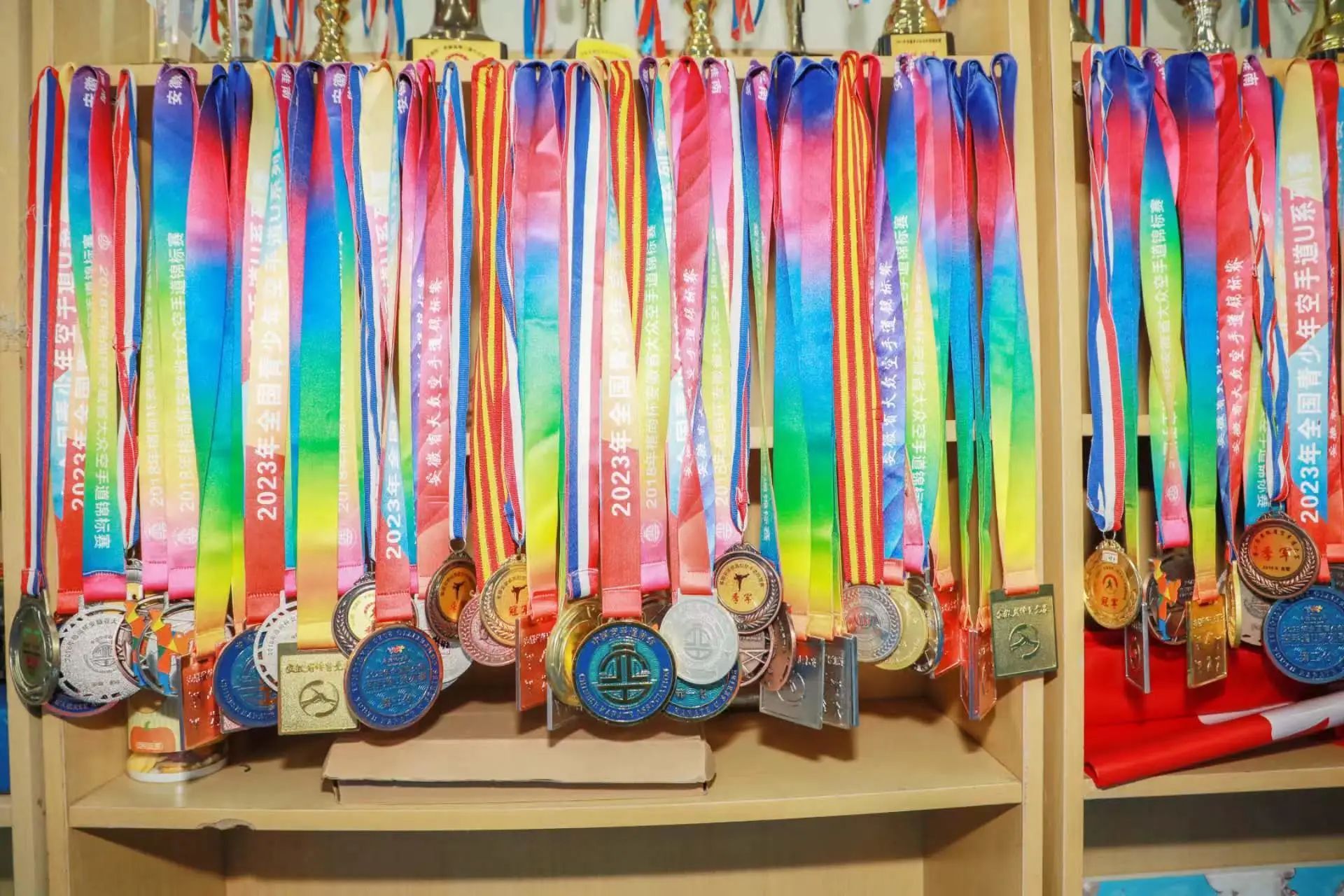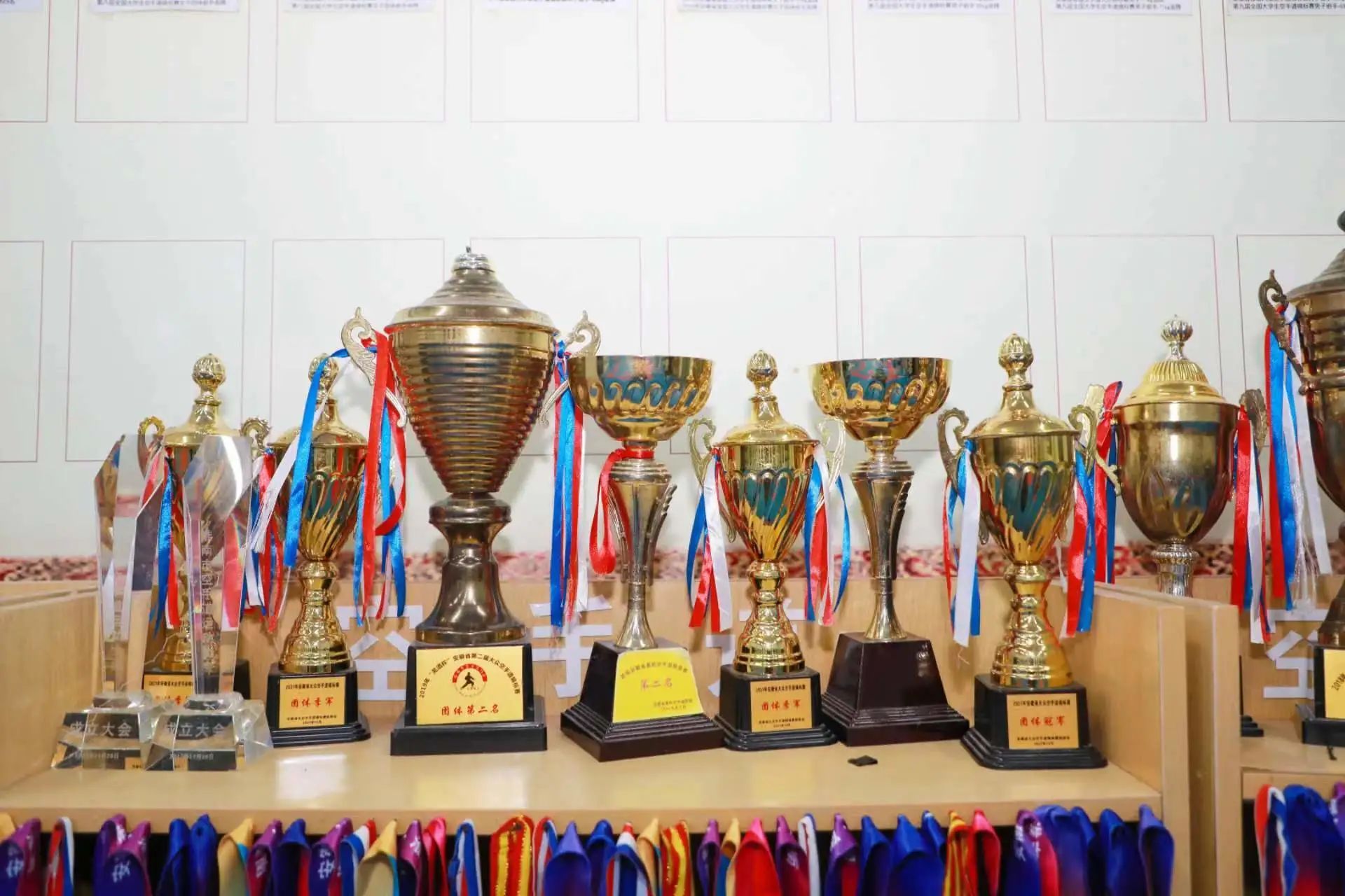 当走进自强体育馆空手道馆,首先映入眼帘的是琳琅满目的奖牌与一排整齐的奖杯,这是一份份沉甸甸的荣誉,更是安理师生努力拼搏的见证。在2011年至2023年的十二年间,董刚带领学校校空手道队在全国大学生空手道锦标赛和全国俱乐部公开赛上获得金牌50多枚,金牌数在全国高校中遥遥领先。如今的安徽理工大学已成为安徽省空手道项目的“训练基地”,省内合肥工业大学、蚌埠医学院等高校和地市专业空手道队经常来学校交流和学习。