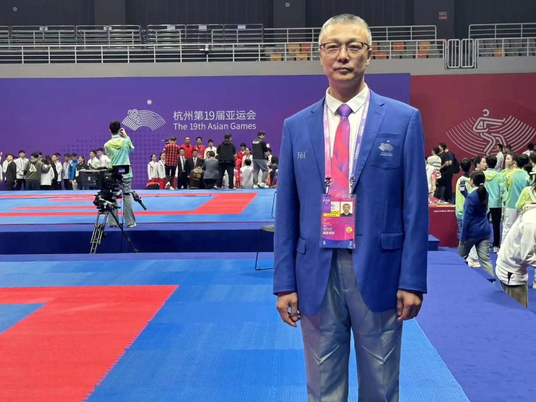 今年,在杭州举行的第十九届亚运会上,董刚受国家体育总局委派,担任空手道项目比赛的技术官员。“这次执裁不仅是组委会对自己的认可,也是学校空手道队发展的新契机,可以从裁判的视角,审视我校空手道,尽快与世界先进理念接轨,希望以后每届亚运会上都能出现安理教师的身影。”董刚说。