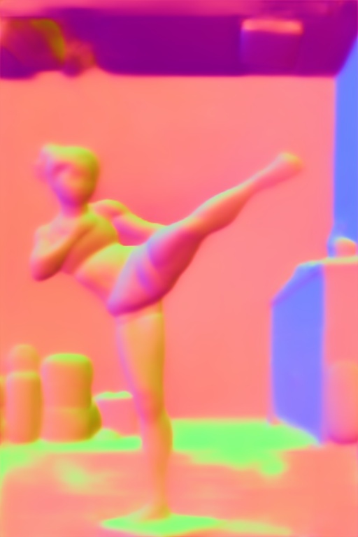同时为了保证姿势不变,利用法线控制来实现人物的指定动作。