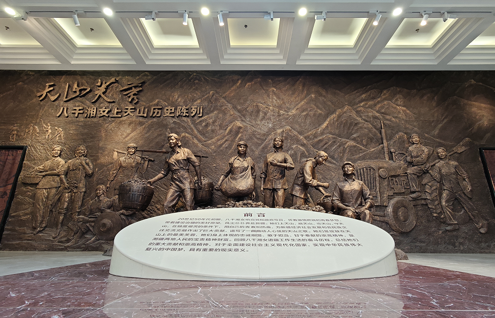 为传承和弘扬“八千湘女”精神品格,深化湘兵两地的深厚情谊,湖南省益阳市援疆工作队策划建设了天山芙蓉“八千湘女上天山”历史陈列。展出分为序厅、天山之约、天山之歌、天山之恋、天山之魂、结语等六大区域,布展面积1128.88平方米。