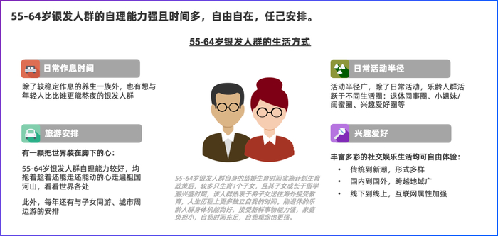 本文我们将主要围绕55-64岁和65-74岁的两类银发人群开展分析。