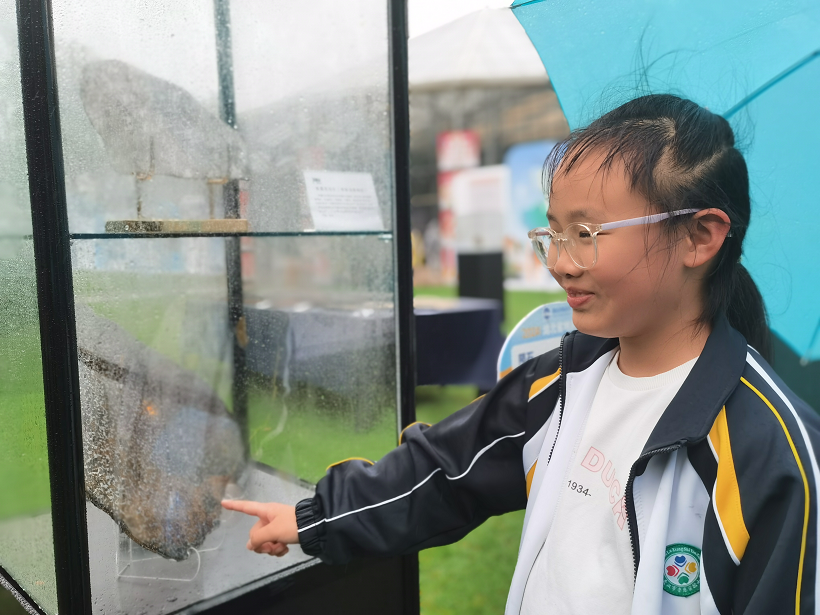 “湖北地跨长江天险,山川瑰丽壮美,拥有很多独具特色的地质文化。这次活动我们展示了一些与湖北有关的地质展品,包括一些矿产资源及汉阳鱼、湖北鳄等化石,很有特色。”湖北省地质局党委委员、副局长易万元介绍,湖北省地质局展区主要围绕“荆楚富矿”“生命印记”“灵秀湖北”“大地之光”四个方面展开,分别对湖北省矿产资源、古生物化石、地质景观以及李四光精神等内容进行展示,现场有介绍、有图片、有实物、有互动,可谓亮点纷呈。易万元表示,湖北省地质局一直以来都很重视地质科普工作,主要围绕三个方面展开:“一是开展基础性、公益性的地质工作,比如寻找湖北矿产资源,古生物化石等;二是把地质工作所取得的成果,通过科普宣传向广大市民进行展示;三是针对中青少年开展科普活动,培养他们对地质工作的兴趣,进一步宣传保护地球,绿色发展的理念。”