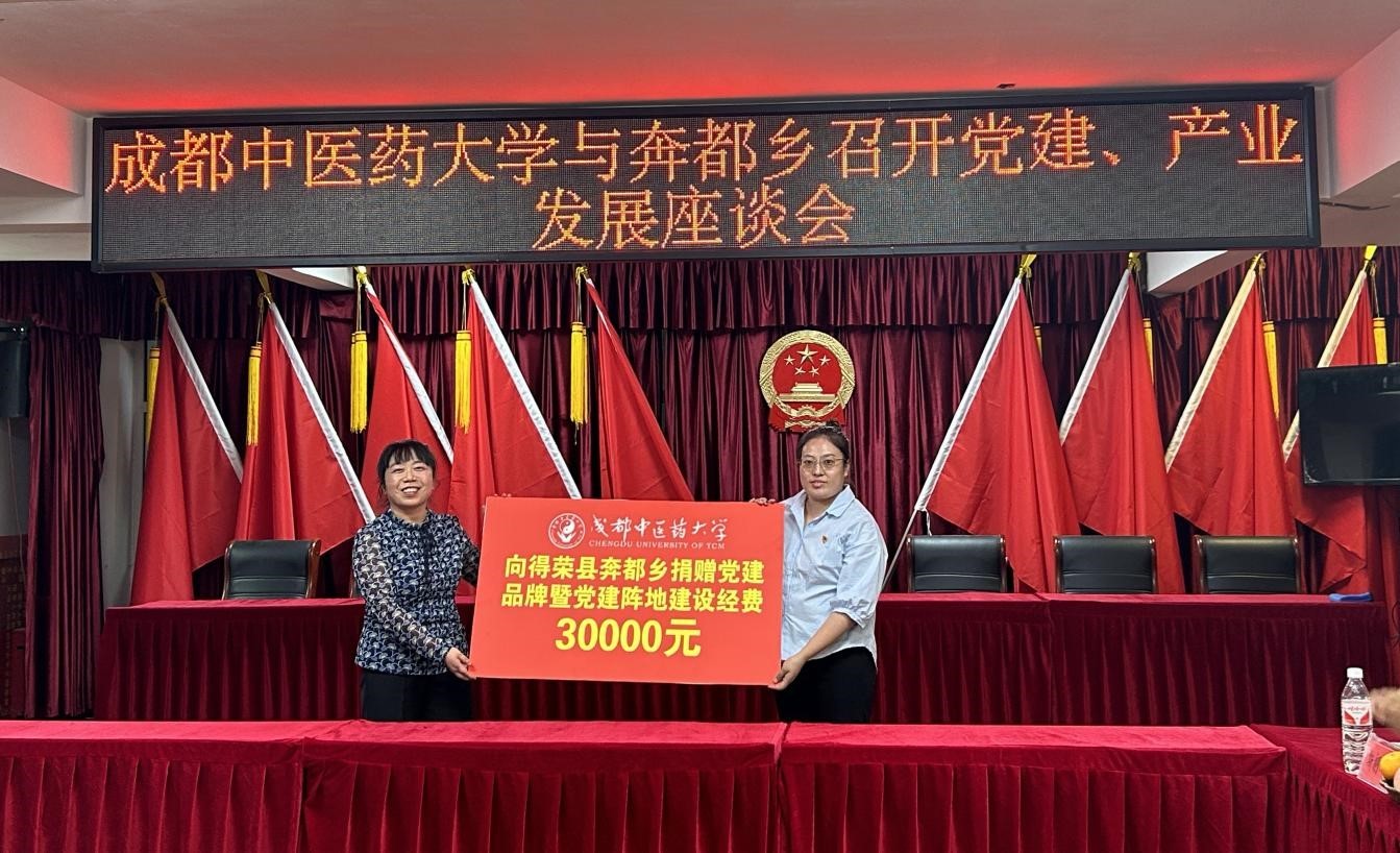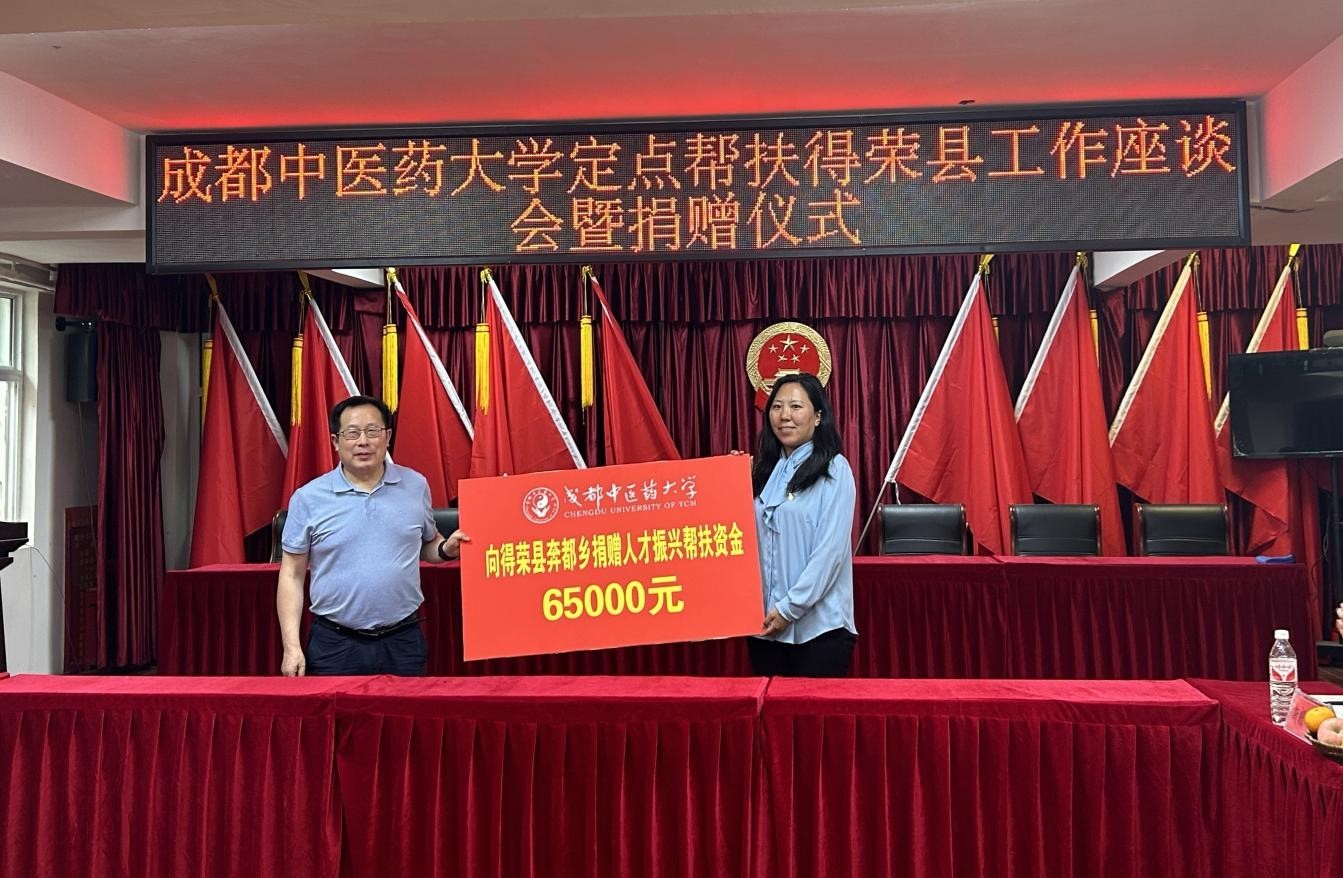 座谈会上举行了定点帮扶捐赠仪式,学校向得荣县奔都乡捐赠人才振兴帮扶资金65000元、党建品牌暨党建阵地建设经费30000元。