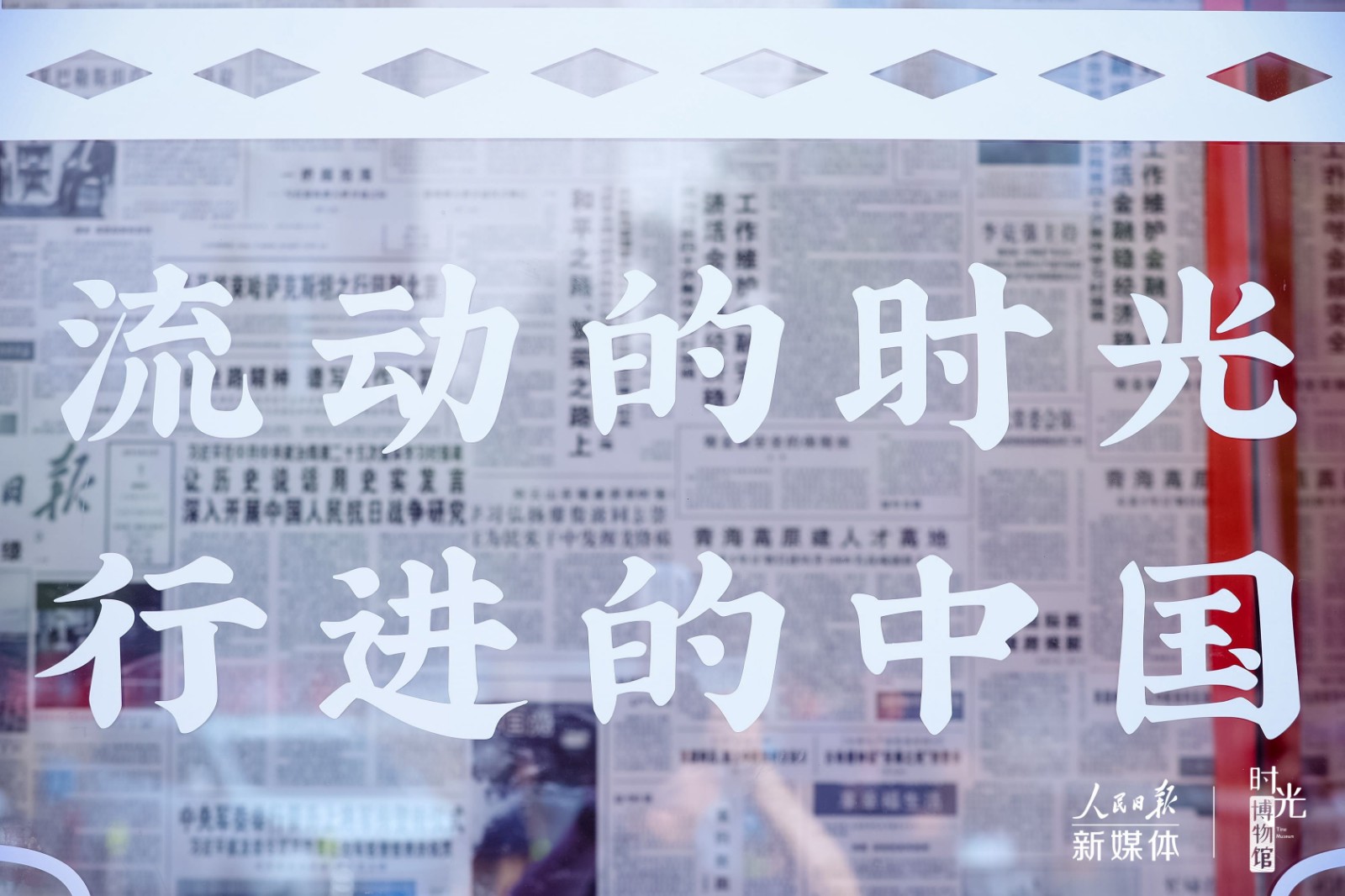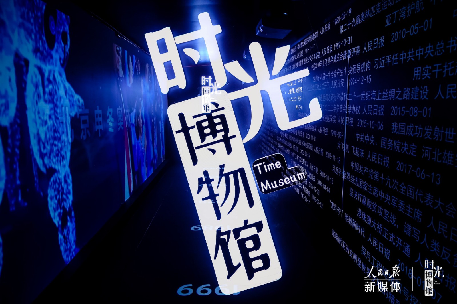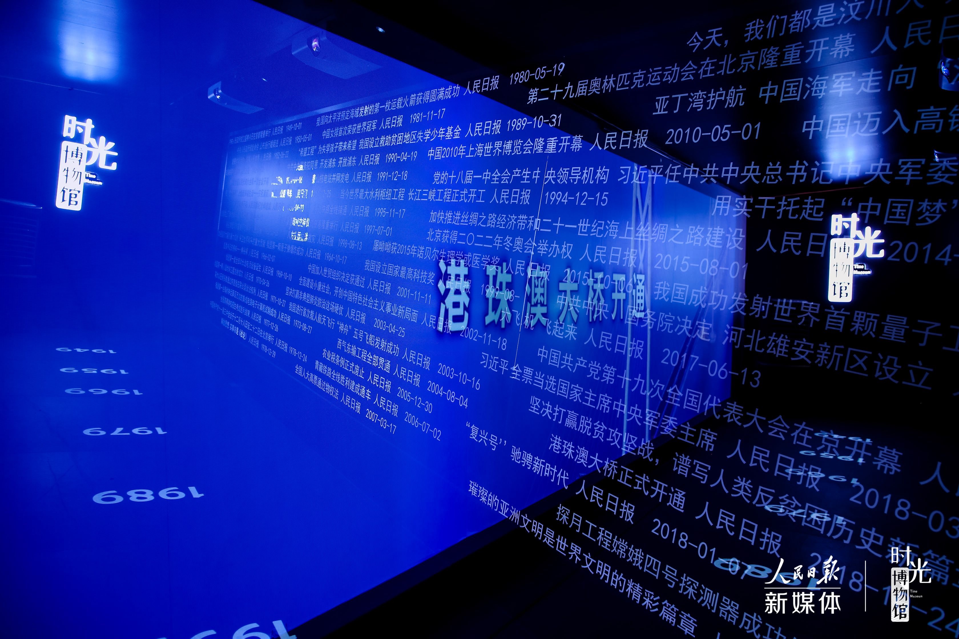 时光走廊:以人民日报1949年来关于中国发展重大事件的报道为主要内容,以创意标题墙与光影记忆展为主要形式,浓缩70年拼搏时光。