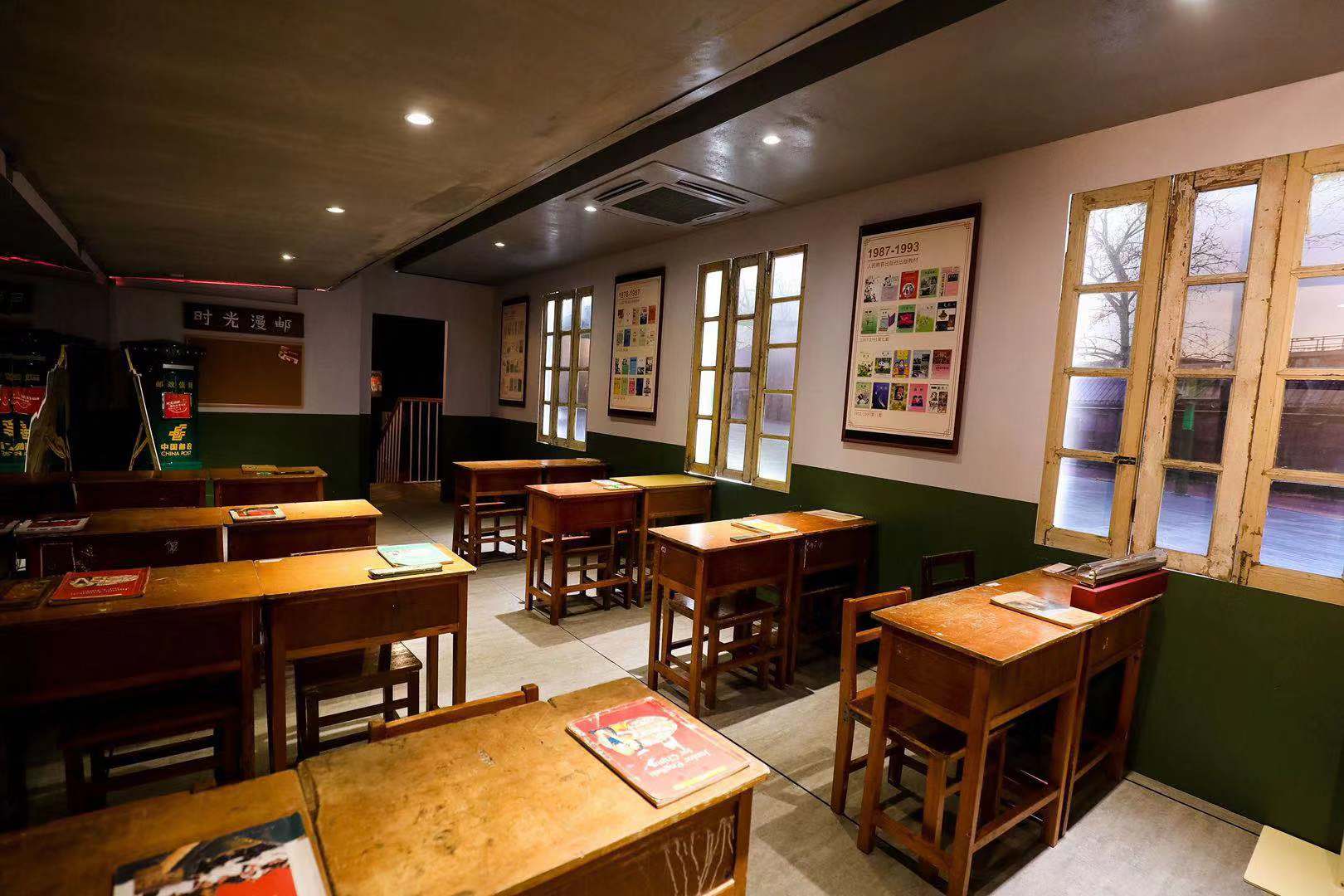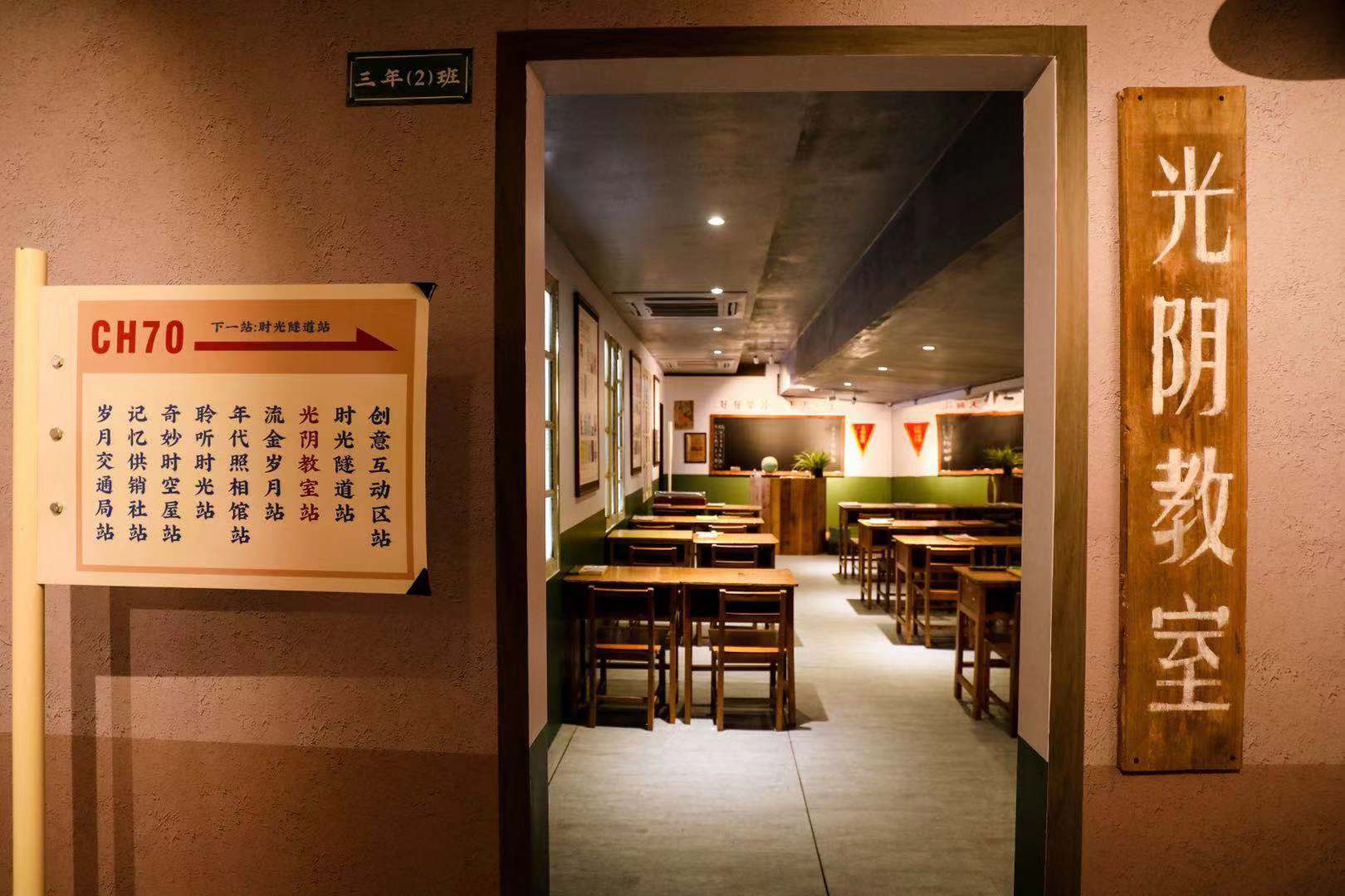 光阴教室:以90年代课堂为场景,展示70年来中国教育发展成就。内设70年老课本变迁展与课堂快闪、光阴答卷、时光慢递等多项互动。