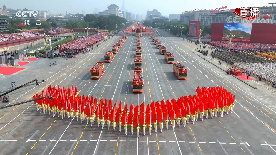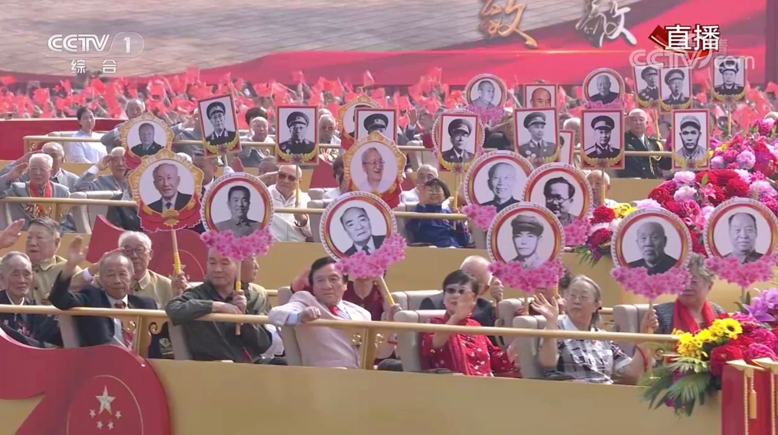 【21辆礼宾车向功勋致敬!】致敬方阵由21辆礼宾车组成。礼宾车上,是老一辈党和国家、军队领导人亲属代表;老一辈建设者和家属代表;新中国成立前参加革命工作的老战士,老一辈军队退役英模、民兵英模和支前模范代表。向功勋致敬!