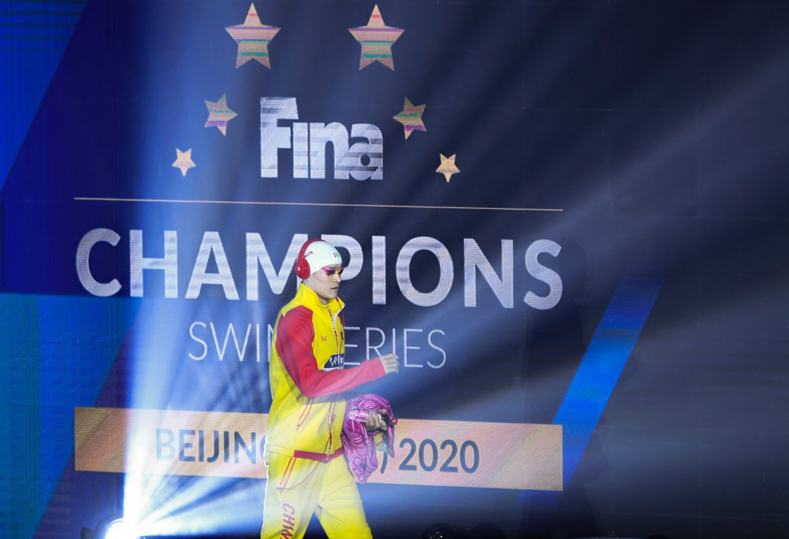 图为孙杨在比赛前入场。新华社记者鞠焕宗摄