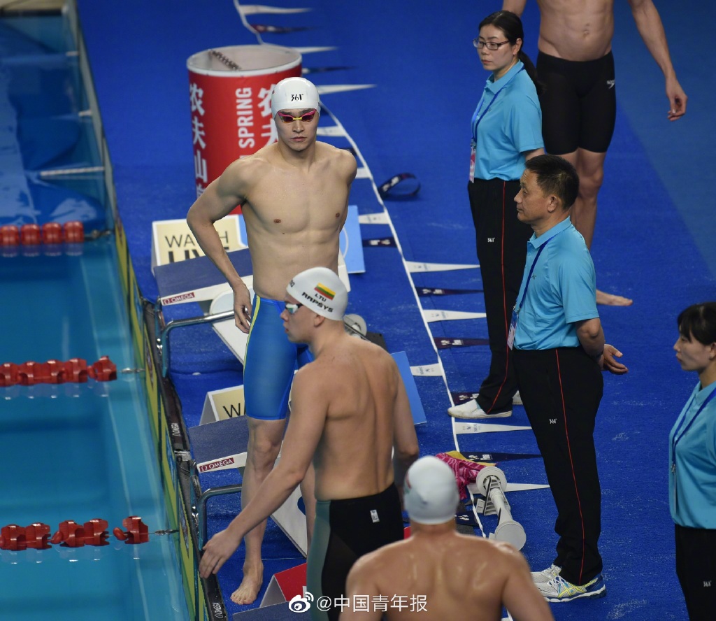 比赛上,孙杨与老对手、立陶宛名将拉普西斯再次狭路相逢,这一次,孙杨没有再给拉普西斯任何机会,一路领先并最终夺冠。(中国青年报微博)