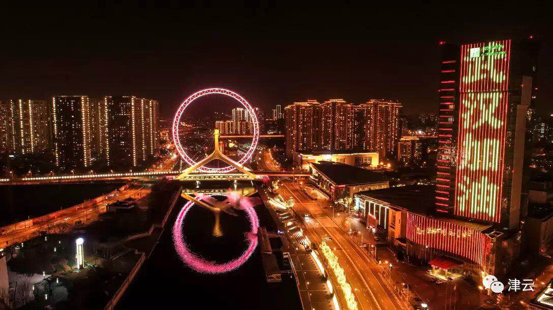 元宵战疫,团圆有时!今晚,元宵夜,全国多地地标亮灯,为武汉加油。图为天津海河夜景。(来源:人民日报客户端综合)