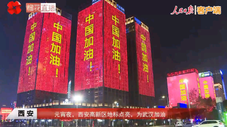 元宵战疫,团圆有时!今晚,元宵夜,全国多地地标亮灯,为武汉加油。图为西安夜景。