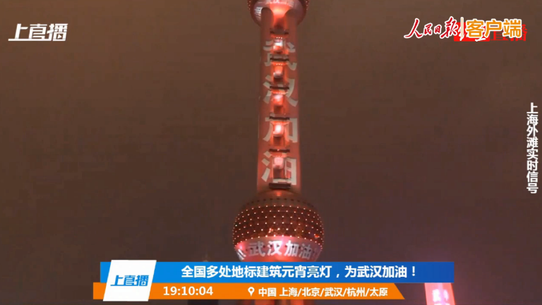 元宵战疫,团圆有时!今晚,元宵夜,全国多地地标亮灯,为武汉加油。图为上海夜景。