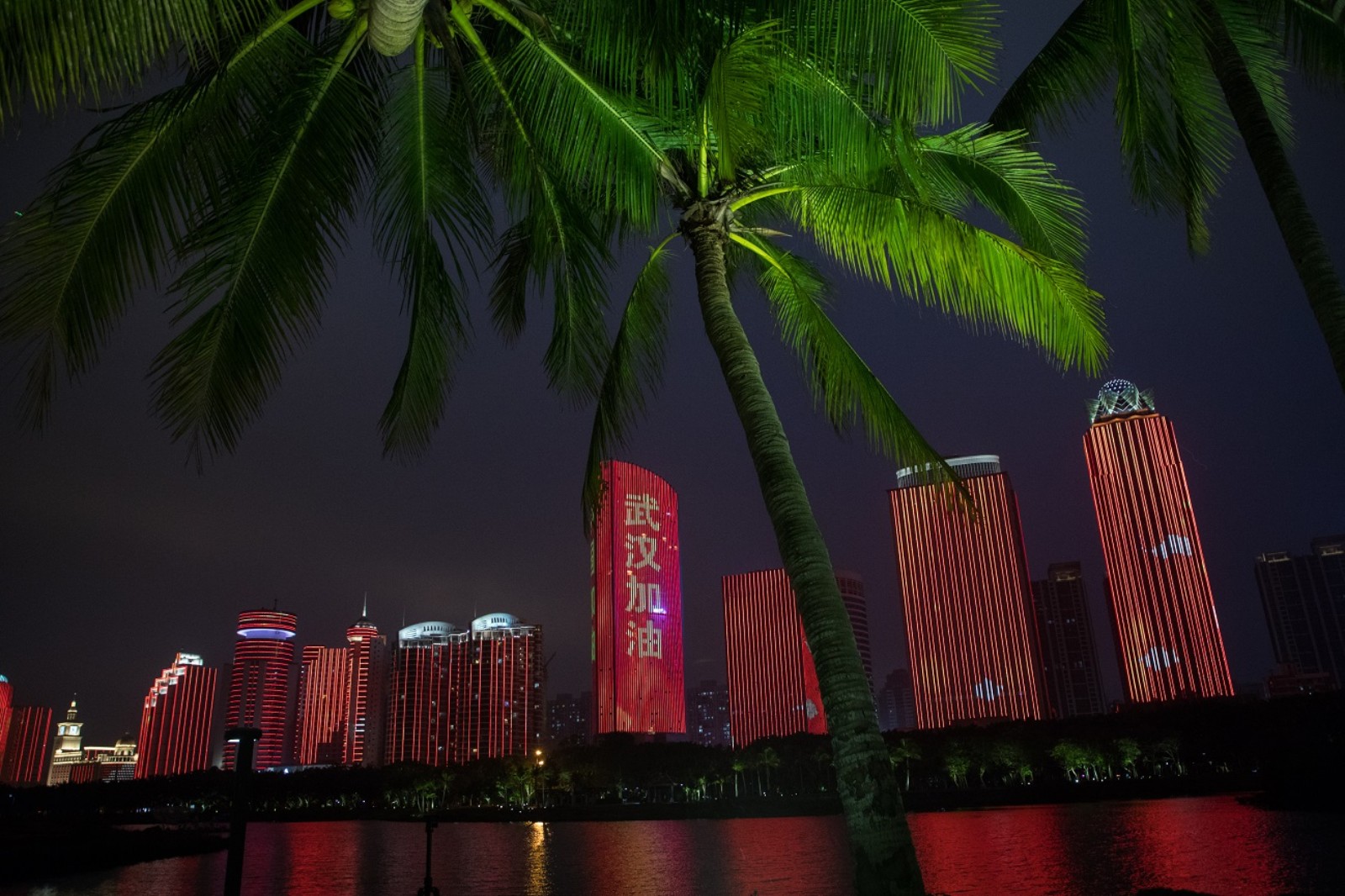 2月8日,正值元宵佳节,海南省海口市滨海大道点亮主题灯光秀,为武汉加油 ! 为中国加油 !(海南日报记者 陈若龙 摄)