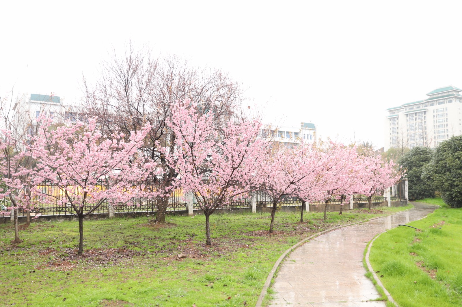 3月2日,武汉大学珞珈广场的早樱在雨中绽放。没有一个冬天不可逾越,没有一个春天不会来临。武汉加油!(来源:人民日报客户端 记者:张意轩 温腾 胡润新)