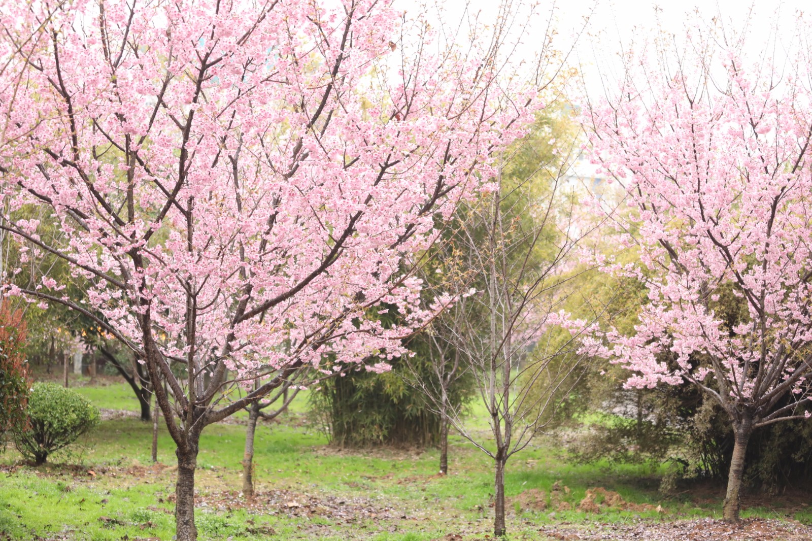 武汉大学的早樱开了