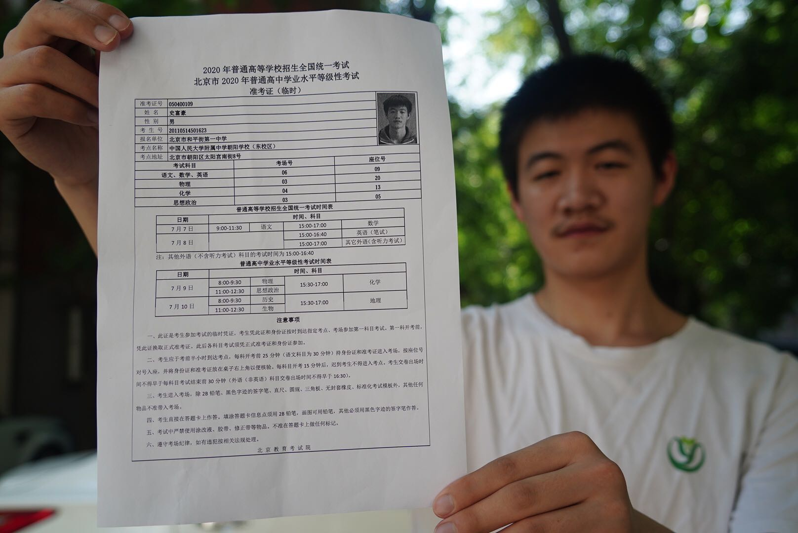 北京市和平里第一中学高三学生拿到打印好的临时准考证。