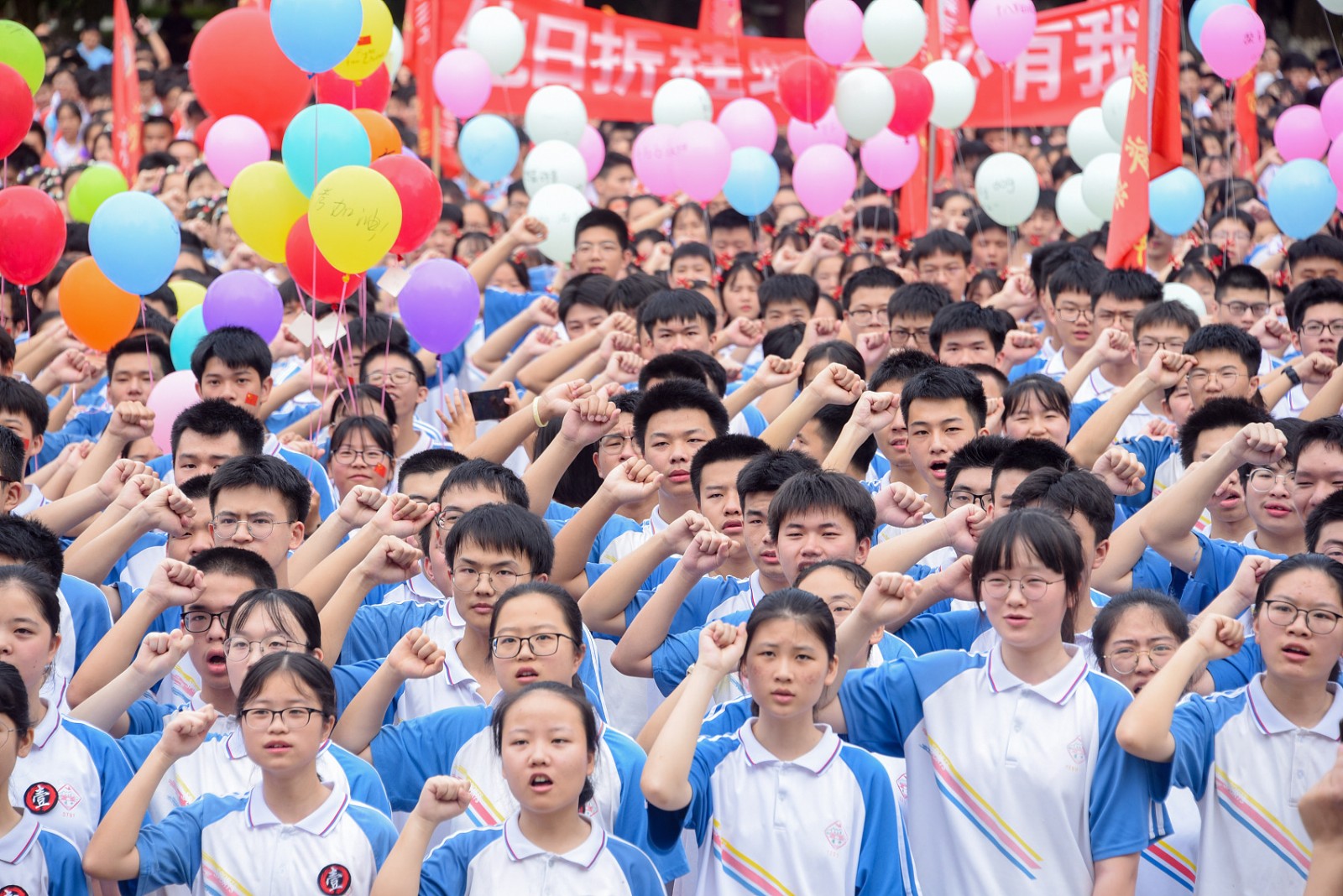 十余载寒窗,多一个月备战,2020年的高考生历经考验;走到高考前最后一天,已值得所有掌声!携勇敢之心,荣耀入场,愿你们合上笔盖的瞬间,有侠客收剑入鞘般骄傲!加油!图为7月3日,江西吉安,遂川县遂川中学举行高考出征誓师大会,为高三学子鼓劲加油。(来源:人民日报客户端综合)