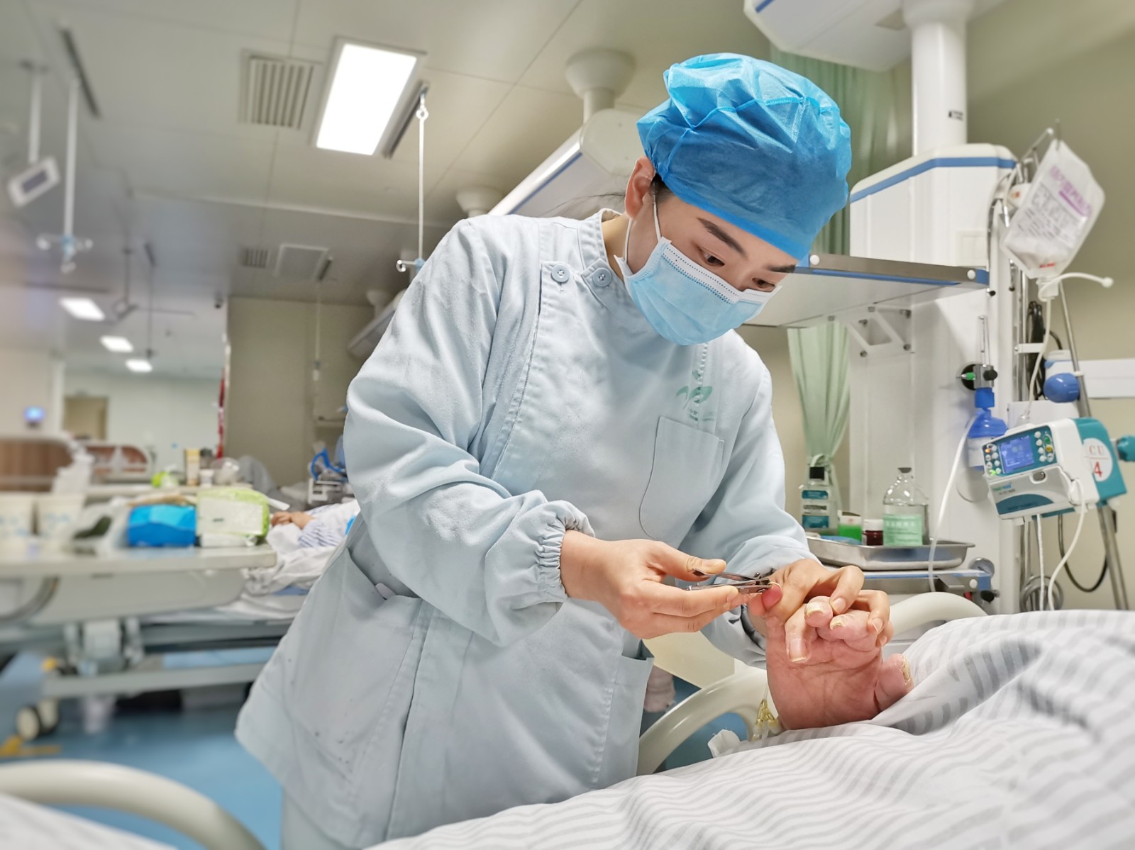 下午16点50分,福建省南平市第二医院护士吴长娟正在细心地为一位老年患者修剪指甲。郑艺姝 供图