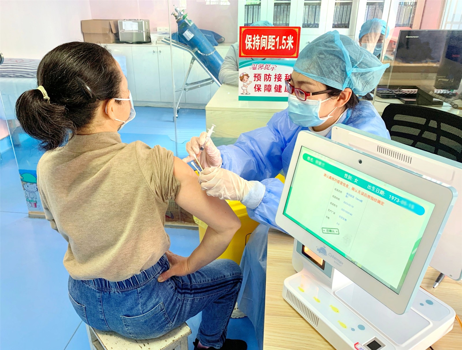 福建省南平市建阳区徐市镇卫生院护士正在为村民接种新冠疫苗。刘智敏 供图